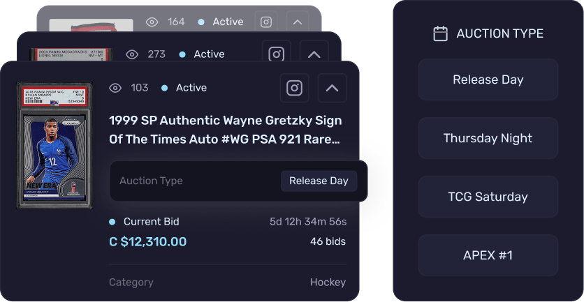 Les articles reçus seront catalogués et mis en vente lors de la prochaine enchère hebdomadaire. Vous pouvez aussi voir vos articles programmés, en cours et terminés dans le portail Slab Sharks.
