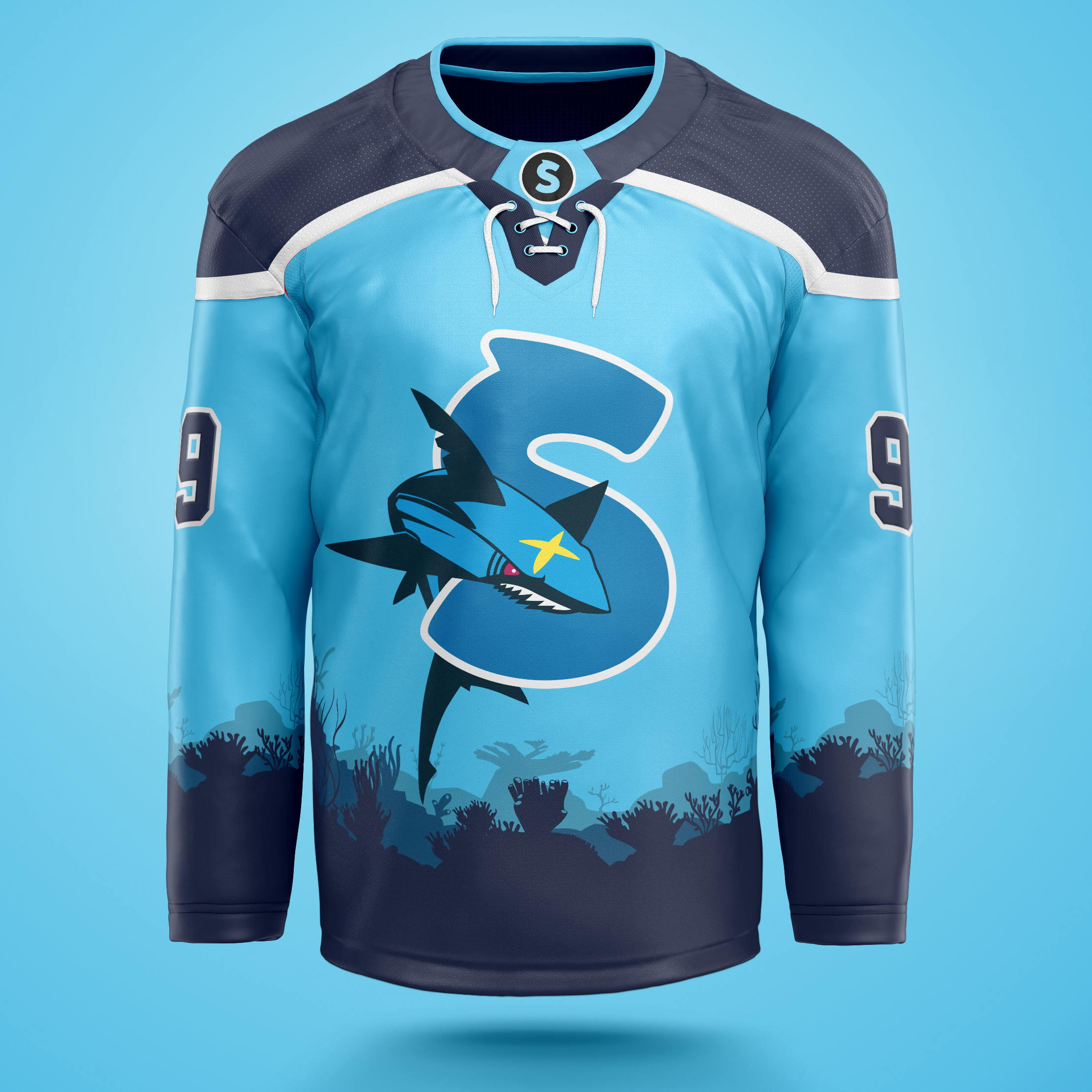 Our exclusive Slab Sharks x TCG themed Hockey Jersey. This jersey design was first released in 2024 and featured by the co-founding team at Slab Sharks at the Toronto Sport Card Expo.